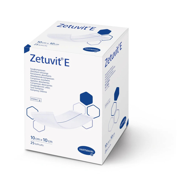 Apósitos absorbentes compuestos de cuatro capas: recubrimiento de tisú hidrófobo, capa de distribución de tisú de celulosa hidrófila, cuerpo absorbente de celulosa de alta absorción y capa de celulosa hidrófoba y transpirable en el dorso del apósito, como protección frente contaminaciones.