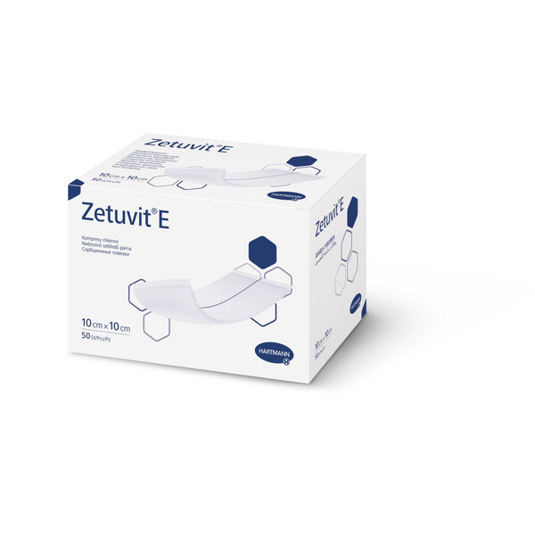 Apósitos absorbentes compuestos de cuatro capas: recubrimiento de tisú hidrófobo, capa de distribución de tisú de celulosa hidrófila, cuerpo absorbente de celulosa de alta absorción y capa de celulosa hidrófoba y transpirable en el dorso del apósito, como protección frente contaminaciones.