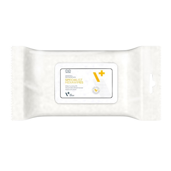 Toallitas de un solo uso destinadas a la limpieza de piel propensa a la inflamación de origen bacteriano o fúngico. Ideales para la higiene y cuidado de zonas como: pliegues cutáneos, alrededor de los ojos, orejas, hocico, ingles o espacios interdigitales.