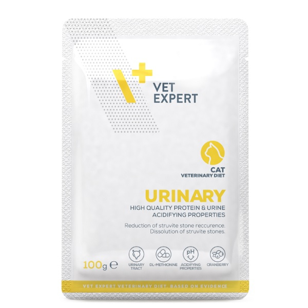 Alimento dietético completo para gatos adultos que disuelve los cálculos de estruvita y reduce su recurrencia. Propiedades subsaturantes o metaestabilizantes de la orina para la estruvita y/o propiedades acidificantes de la orina.