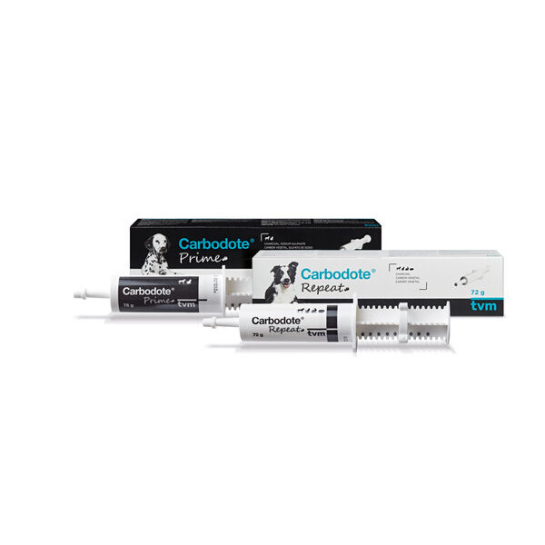 Carbodote Prime sirve para la ayuda en caso de ingestión de sustancias indeseables, en perros y gatos.