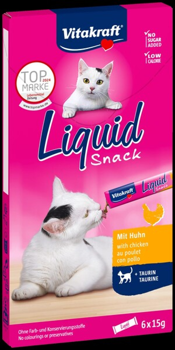 Snack líquido de pollo y taurina para gatos de todas las edades, favorece la salud cardiovascular así como visual y hepática, es muy fácil de digerir y no tiene cereales ni colorantes artificiales.